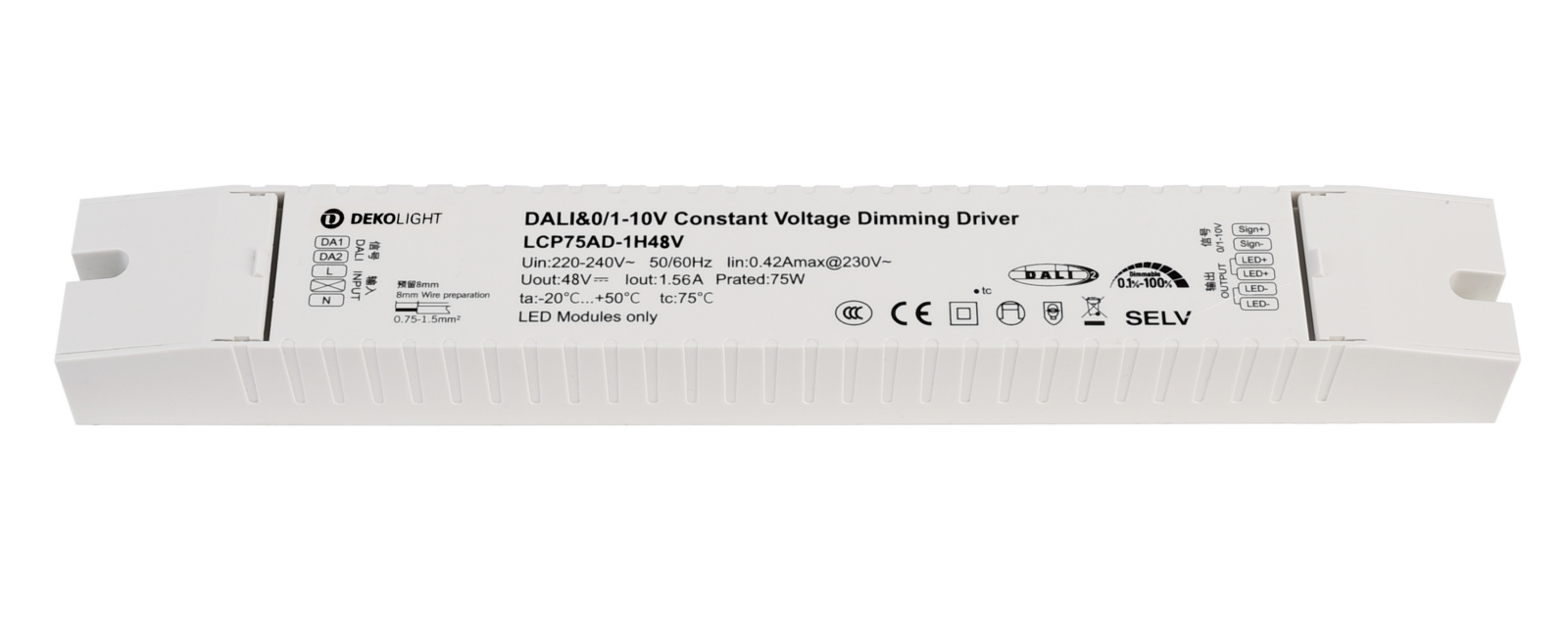 Ansteuerung : DALI 2.0 / DT6;0-10 V;1-10 V;Intelli Push-Dim || Push-Dim Funktion und zusätzlich die Möglichkeit alle angeschlossen Leuchten über Taster zurückzusetzen. || Intelli Push-Dim