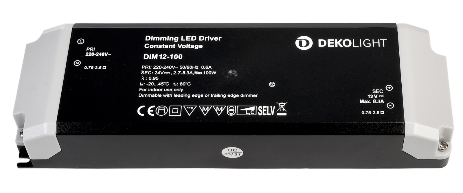 Sekundär Strom/Spannung : 12 V/DC / 2700-8300 mA