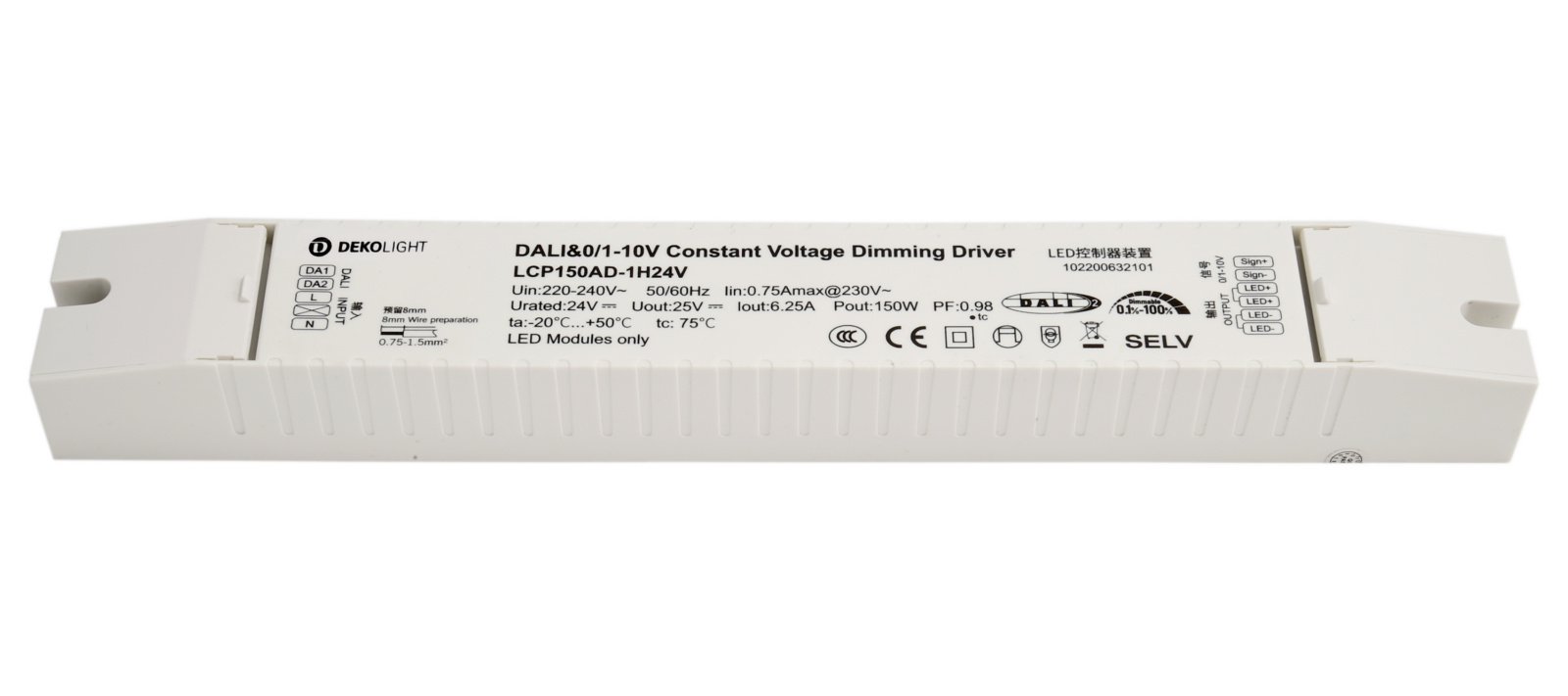 Ansteuerung : DALI 2.0 / DT6;0-10 V;1-10 V;Intelli Push-Dim || Push-Dim Funktion und zusätzlich die Möglichkeit alle angeschlossen Leuchten über Taster zurückzusetzen. || Intelli Push-Dim