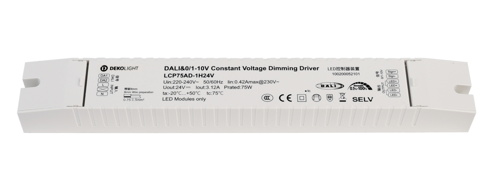 Ansteuerung : DALI 2.0 / DT6;0-10 V;1-10 V;Intelli Push-Dim || Push-Dim Funktion und zusätzlich die Möglichkeit alle angeschlossen Leuchten über Taster zurückzusetzen. || Intelli Push-Dim