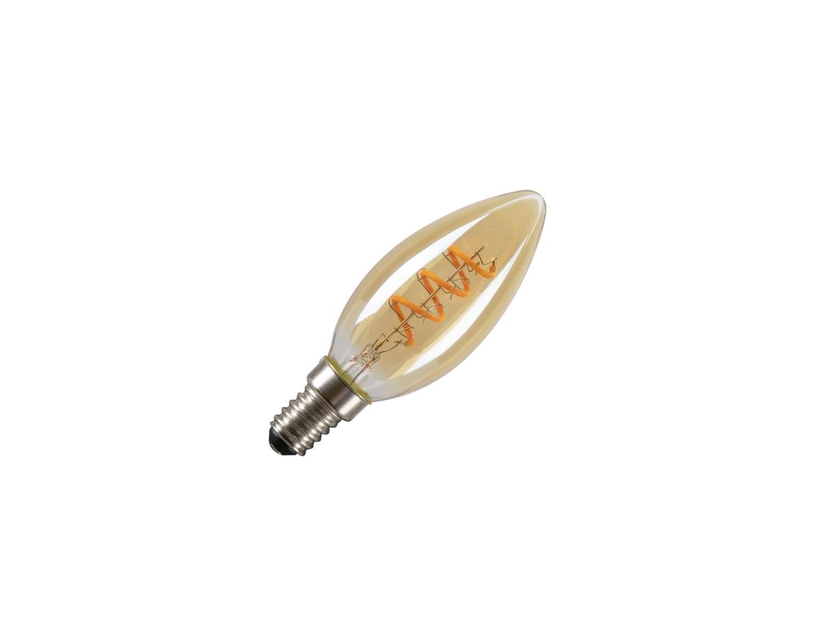 Dieses dekorative C35 Leuchtmittel kommt in klassischer Kerzenform mit einem Curly Filament. Es hat goldenes Rauchglas und einen E14 Sockel, ideal für stimmungsvolle Beleuchtung mit wahlweise 1800 K oder 2200 K.