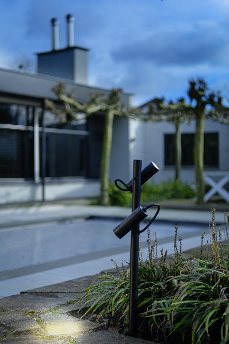 Mit ihrem minimalistischen Design und der schwarzen Oberfläche passt sich die HELIA SLIM Stehleuchte ganz natürlich in jede Außenumgebung ein. Während das warmweiße Licht (3000 K) eine besonders behagliche Atmosphäre ausstrahlt, macht die hochwertige Beschichtung den langlebigen Einsatz (L70B50, 50.000h) auch in Küstennähe möglich. Dabei lässt sich der Standort der mit 6 W-Leuchtenköpfen und 38°-Optik ausgestatten Pollerleuchte dank des 1,5 m langen Kabels mit Schuco-Stecker (IP44) ganz unkompliziert variieren.