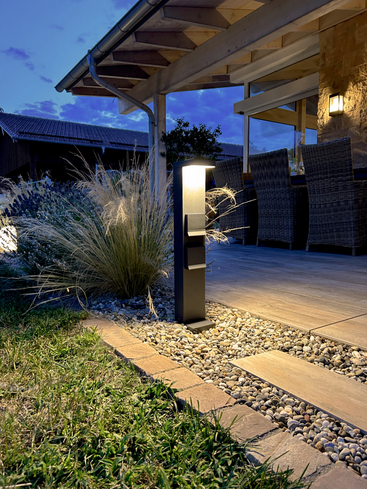 Die Energieverteiler der LERNA-Serie bieten eine Vielzahl von Vorteilen. Mit insgesamt zwei Steckdosen und einer Gesamtbelastung von 3680 W ermöglichen sie Ihnen den Anschluss verschiedener Geräte und bieten gleichzeitig eine zuverlässige Beleuchtung. Dabei sind Leuchte und Steckdosen getrennt schaltbar (separater L+N). Der Steckdosendeckel rastet geöffnet ein, was für zusätzlichen Komfort sorgt. Mit der Möglichkeit, die Lichtfarbe in 2 Stufen einzustellen (3.000 K / 4.000 K), können Sie die Farbtemperatur, je nach gewünschter Situation anpassen. Darüber hinaus gewährleistet das nach unten gerichtete Licht zu 100 % eine effiziente Beleuchtung ohne Lichtverschmutzung. Die Pollerleuchte der LERNA-Serie ist in zwei verschiedenen Größen erhältlich (600 mm und 1000 mm). Mit einer Leistung von 6 W und 516 lm bietet die Leuchte selbst eine hervorragende Helligkeit.