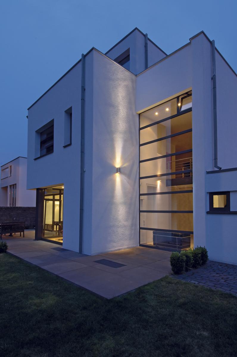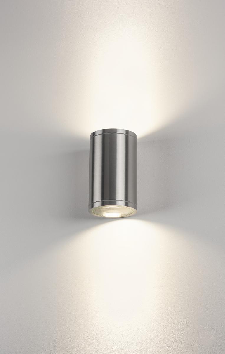 Die puristische Wandleuchte der ROX Serie besteht aus gebürsteten Aluminium und Glas welches die Leuchtmittel abdeckt. Dank der Position der zwei verbauten Fassungen, erzeugt die montierte Leuchte zwei gleiche, jedoch entgegengesetzte Lichtkegel (UP/DOWN). Durch die Schutzart IP44 ist sie für den Außenbereich geeignet. Der elektrische Anschluss erfolgt an 230V Netzspannung. Die ROX Serie beinhaltet des Weiteren Decken- sowie Standleuchten mit unterschiedlichen Fassungen und ist somit universell einsetzbar.