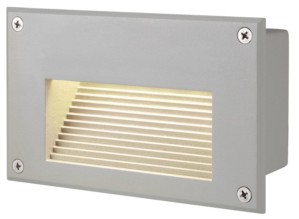 Aus Aluminium gefertigte, mit leistungsstarken SMD LEDs bestückte Wandeinbauleuchte mit indirekten, blendfreiem Lichtaustritt. Durch die Schutzart IP54 ist die Leuchte für den Außenbereich geeignet. Der elektrische Anschluss der in mehreren Lichtfarben verfügbaren Leuchte erfolgt direkt an 230V Netzspannung. Zur einfachen Montage befindet sich ein Einbautopf im Lieferumfang. Diese Leuchte enthält eingebaute LED-Lampen.