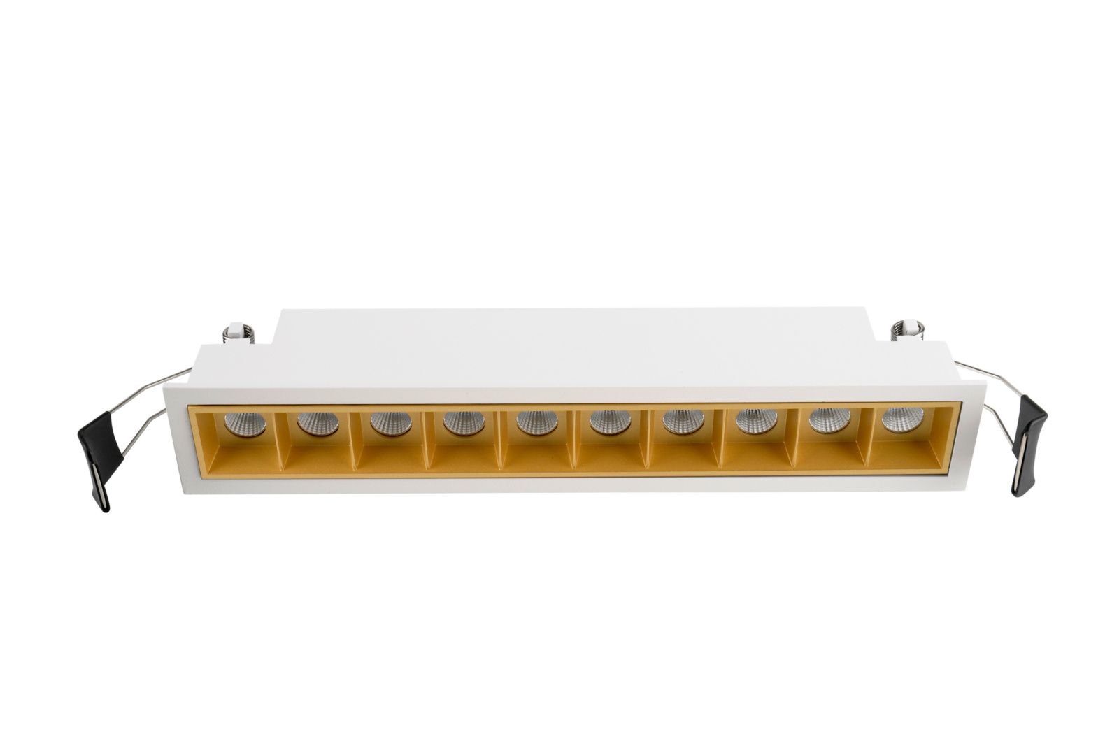 Die Deckeneinbauleuchte CETI erzeugt mit ihren LED-Lichtquellen ein stark entblendetes, warmweißes Licht (3.000 K). Hierzu tragen vor allem die zurückgesetzten Reflektoren der Leuchte bei. Zusätzliche Gestaltungsoptionen bieten die austauschbaren farbigen Reflektoreinsätze in den Farben Silber und Gold. Die CETI kann individuell mit einem Netzgerät kombiniert und gedimmt werden.