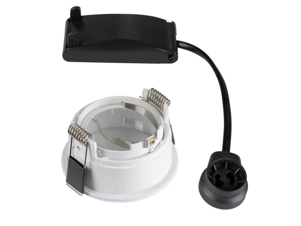 Starre Hochvolt Einbauleuchte der HORN Serie. Bei der aus Aluminium gefertigten Leuchte ist das Leuchtmittel nach hinten versetzt eingebaut. Durch diese Bauweise ergibt sich eine besondere Optik sowie eine wirksame Blendreduzierung. Des Weiteren haben die Leuchten eine erfolgreiche Blower-Door-Prüfung vollzogen. Die HORN Serie ist in mehreren Versionen verfügbar.