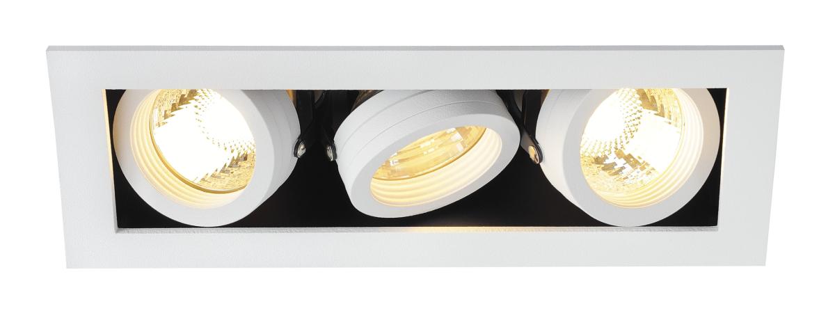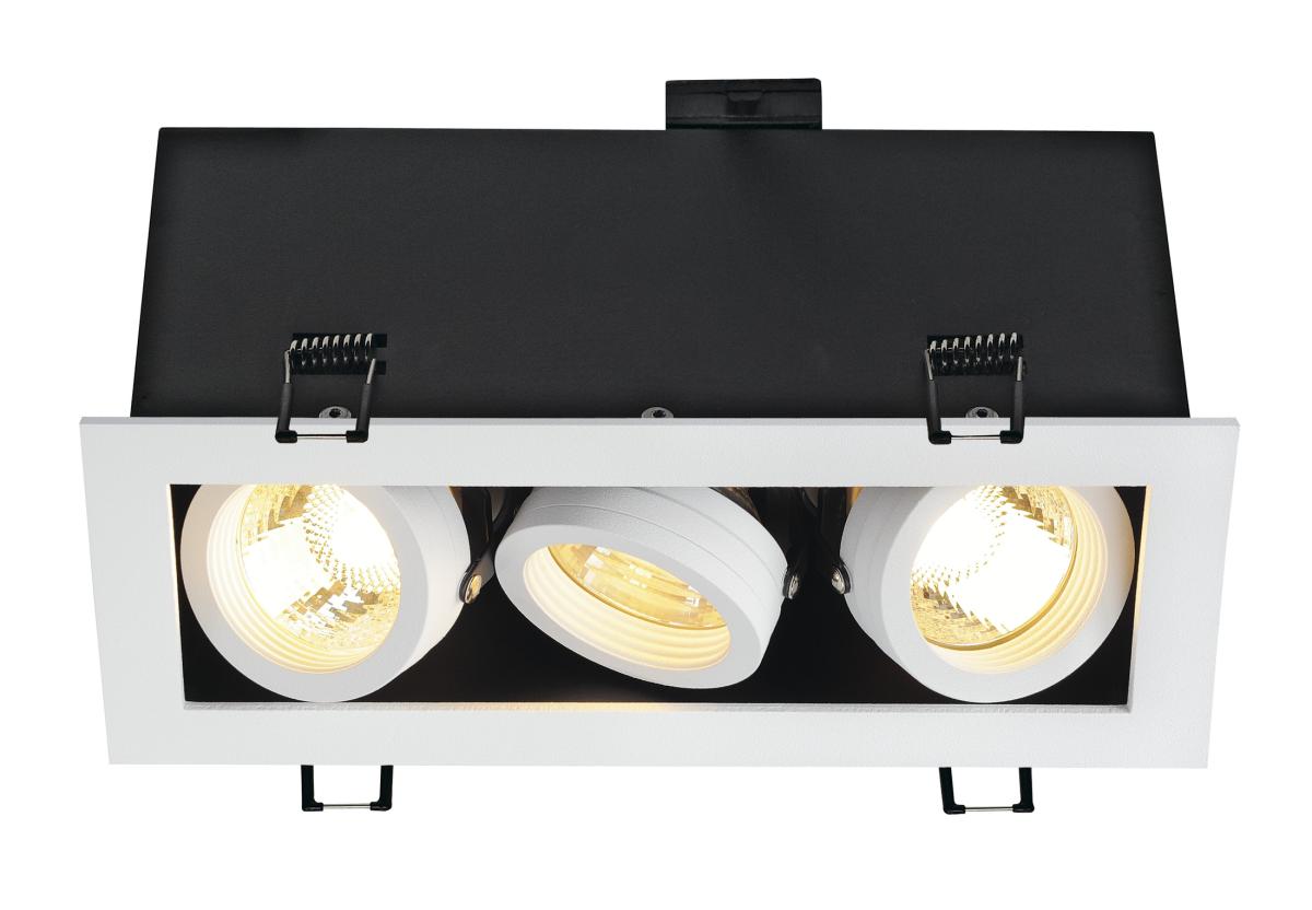 Die KADUX Einbauleuchten Serie erscheint in einem robusten Leuchtengehäuse mit ansprechend hochwertiger Optik. Die Lampenhalter dieser GU10 Hochvoltversion sind kardanisch schwenkbar und erlauben so die individuelle Ausrichtung der Lichtkegel. Die KADUX 3 Einbauleuchte wird fertig für den direkten Anschluss an 230V Netzspannung geliefert.