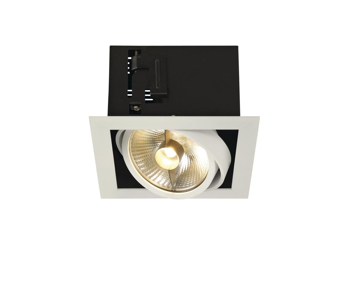 Die KADUX Einbauleuchten Serie erscheint in einem robusten Leuchtengehäuse mit ansprechend hochwertiger Optik. Die Lampenhalter dieser ES111 Hochvoltversion sind kardanisch schwenkbar und erlauben so die individuelle Ausrichtung der Lichtkegel. Die KADUX 1 Einbauleuchte wird fertig für den direkten Anschluss an 230V Netzspannung geliefert.
