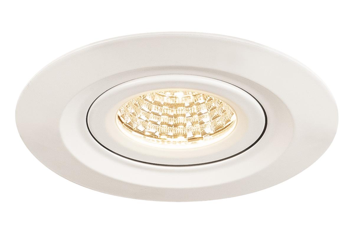 Die dimmbare KINI Deckeneinbauleuchte besticht durch ihre schlichte Optik. Mit ihrer Schutzart IP65 ist sie im Außenbereich oder in Feuchträumen einsetzbar. Verfügbar weiß ist sie in runder Form erhältlich. Durch die Bestückung mit einer leistungsstarken, warmweißen LED in einem schwenkbaren Einsatz, sowie des im Lieferumfang enthaltenen LED-Treibers, kann das Set den Anforderungen der Allgemeinbeleuchtung gerecht werden. Der elektrische Anschluss erfolgt an 230V Netzspannung.