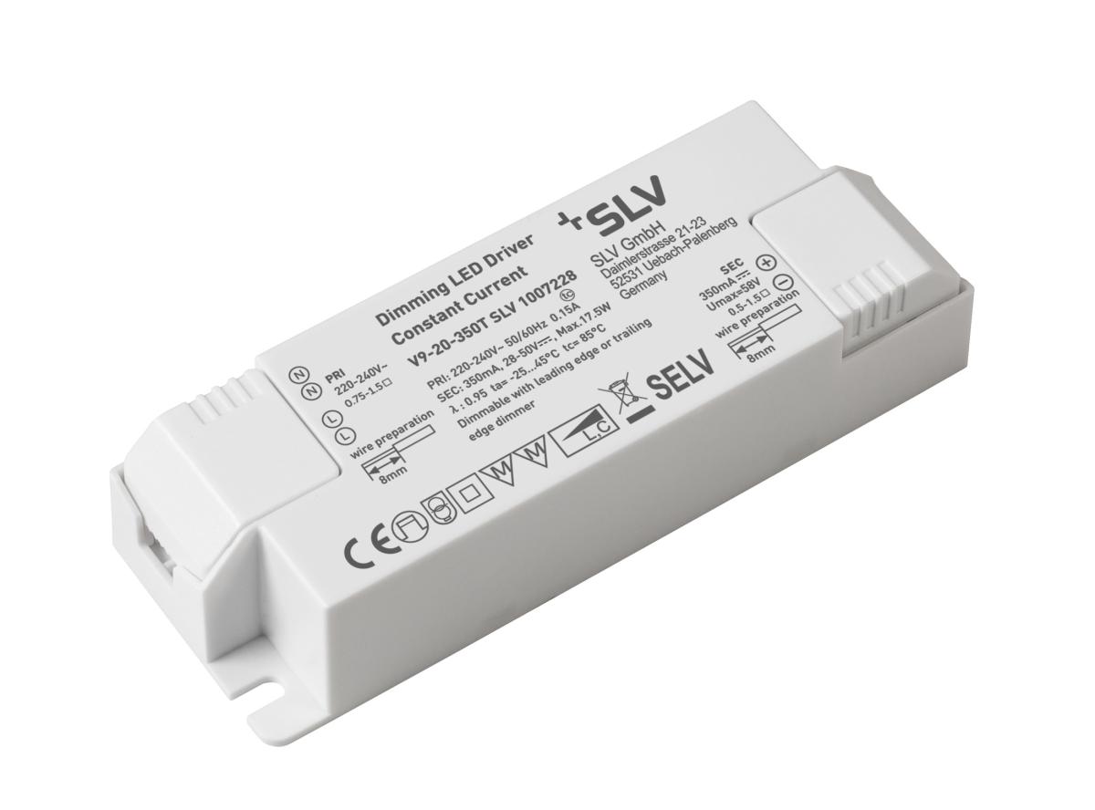 Dimmbarer LED-Treiber mit 350 mA Konstantstrom und einer Leistung von maximal 20 Watt. Dimmbar über Phasenabschnitt und Phasenanschnitt