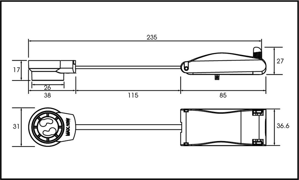 GU10-Fassung für N-tri-Downlights, konzipiert für sichere Installationen. Material : Polycarbonat Farbe : LED-Strips, no luminaire housing/non-applicable Leistung : 10 W Eingangsspannung : 230 V/AC Schutzklasse : II Montage : Einbau