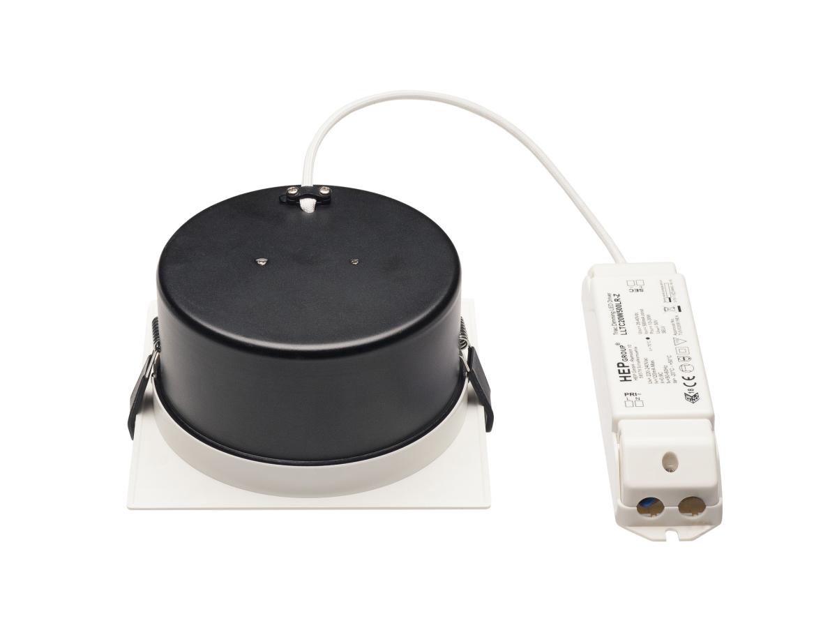 Die leichte, eckige Einbauleuchte VERLUX mit rundem Ausschnitt ist in unterschiedlichen Leistungen und Größen erhältlich. Die eckige Deckeneinbauleuchte aus Aluminium ist erhältlich in der Farbe weiß. Der starre Premium LED-Einsatz ermöglicht durch den breitestrahlenden Abstrahlungswinkel von 80° eine homogene Grundbeleuchtung. Aufgrund des im Lieferumfang enthaltenen dimmbaren Konstantstromtreiber ist die Leuchte anschlussfertig für 230 Volt Netzspannung.