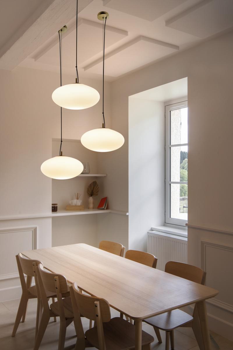 OLYPSO verbindet zeitloses Design mit einem Hauch Retro-Charakter: Die markante, organische Form aus hochwertigem weißem Opalglas sorgt für ein weiches, gleichmäßiges Licht. Mit zwei Größen (Ø 400 mm und Ø 500 mm) und den eleganten Farboptionen lassen sich moderne Wohnbereiche oder Objektbereiche stilvoll inszenieren. Das lange Textilkabel (5 m) bietet maximale Flexibilität bei der Positionierung – perfekt für Akzentlösungen oder Gruppenanordnungen.
