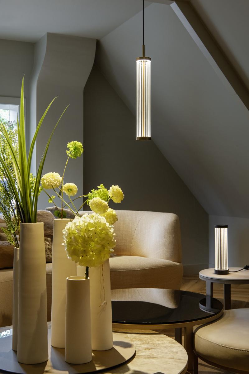 Die Pendel-, Wand- und Tischleuchten der QUIMERA Leuchtenfamilie überzeugen durch zeitlose Eleganz. Jedes Mitglied ist mit einer hochwertigen PVD-Beschichtung versehen, wodurch hervorragende Oberflächeneigenschaften enststehen. Auch die drei Farben Aged bronze, Matt nickel plated und Brushed brass kommen damit besonders gut zur Geltung. Zusätzlich sorgen die eleganten Gravurlinien im Glas dafür, dass das Licht indirekt erscheint, was die edle und zeitlose Ausstrahlung nur noch erhöht.