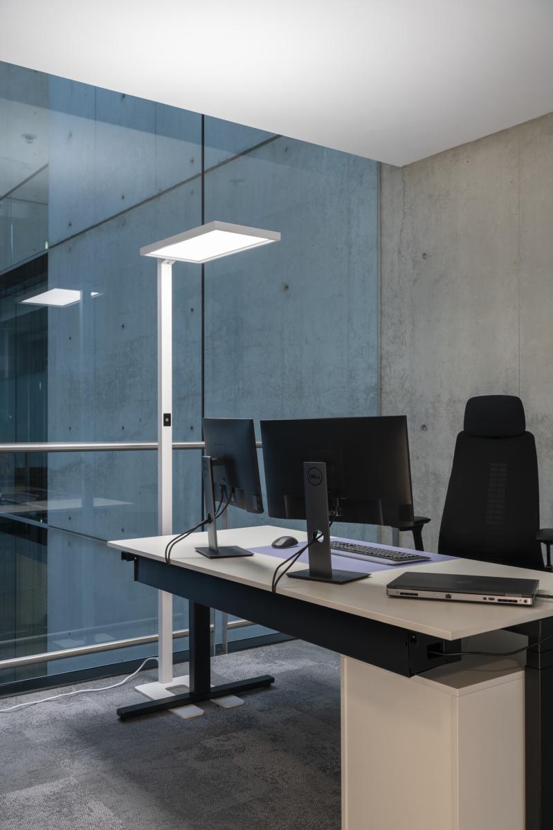 Als konsequente Weiterentwicklung unserer WORKLIGHT Serie, erhalten Sie dieser WORKLIGHT eine Office Standleuchte für Bildschirmarbeitsplätze, ausgestattet mit modernster Technik und hocheffizienten, leistungsstarken LEDs und natürlich UGR ≤ 19. Durch die Bestückung mit einem Bewegungssensor, der verbauten Tageslichtsteuerung sowie der Möglichkeit der Dimmbarkeit wird Sie allen Anforderungen der heutigen Bürobeleuchtung gerecht. Durch den bereits eingebauten Treiber sowie der Zuleitung inklusive Stecker, ist die WORKLIGHT fertig für den direkten Anschluss an 230V Netzspannung. Diese Leuchte enthält eingebaute LED-Lampen.