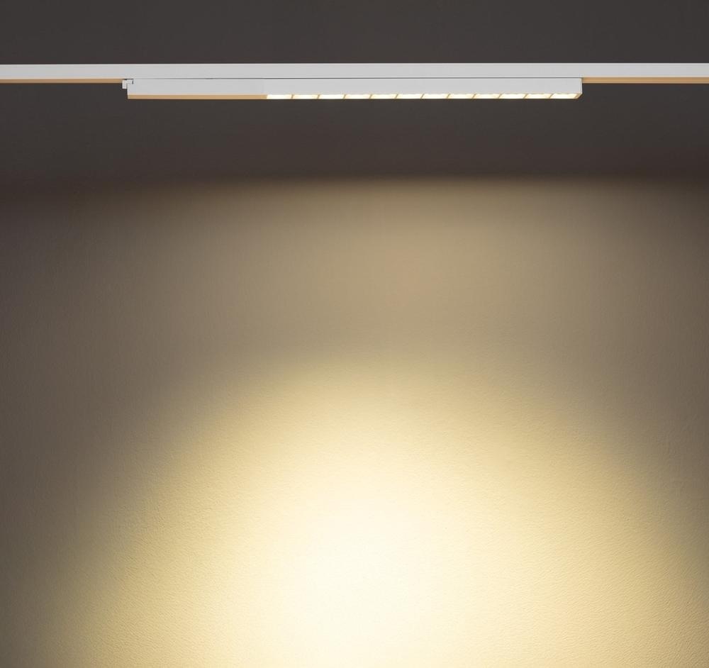 Die weiße lineare 1-Phasen-Schienenleuchte verfügt über ein Punktdesign mit 10 W Leistung bei 2700 K und bietet energieeffiziente und saubere Beleuchtung für moderne Innenräume.