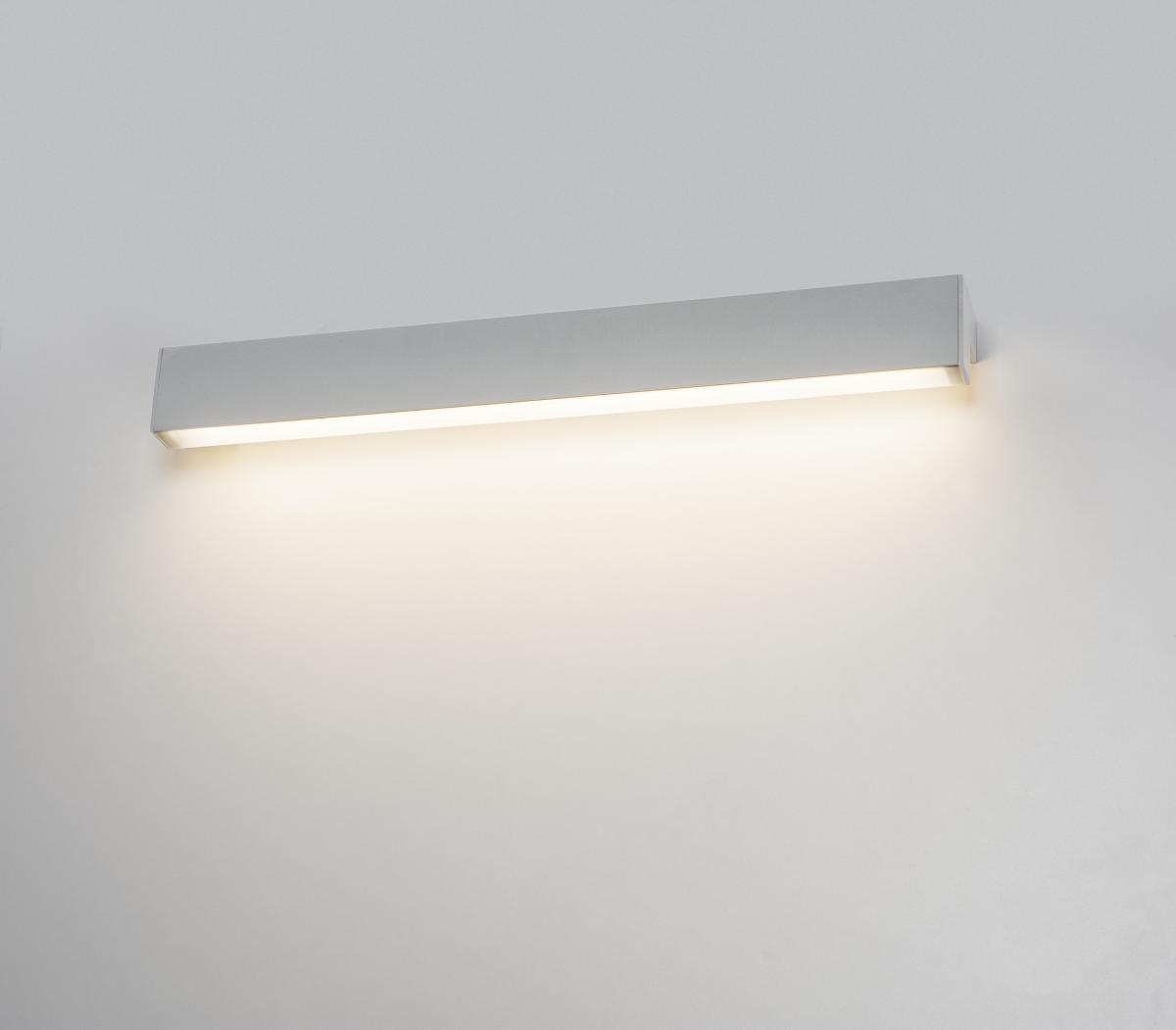 Die mit einem warmweißen LED Modul bestückte L-LINE 60 Wandleuchte ist dank der hohen LED Leistung die ultimative LED-Lösung für eine primäre Raumausleuchtung. Die schlichte und elegant wirkende L-LINE LED ist in den Farbausführungen weiß, silber und grau erhältlich. Die Leuchte ist für den direkten Anschluss an 230 Volt Netzspannung geeignet