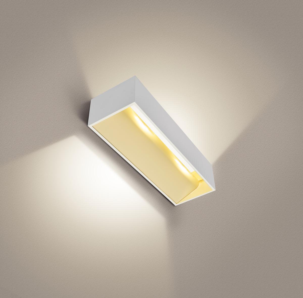 Die markante LED UP/DOWN Wandaufbauleuchte LOGS IN L verfügt über eine hochmoderne, leistungsstarke LED welche ihr regelbares, warmweißes Licht indirekt abgibt. Somit eignet sie sich hervorragend zur blendfreien Beleuchtung von Treppen, Aufgängen und Räumen. Bedingt durch die Dim-to-Warm Funktion ist die LOGS IN L stufenlos und absolut flackerfrei dimmbar. Durch das in die Rosette integrierte Betriebsgerät kann der elektrische Anschluss direkt an 230V Netzspannung erfolgen.
