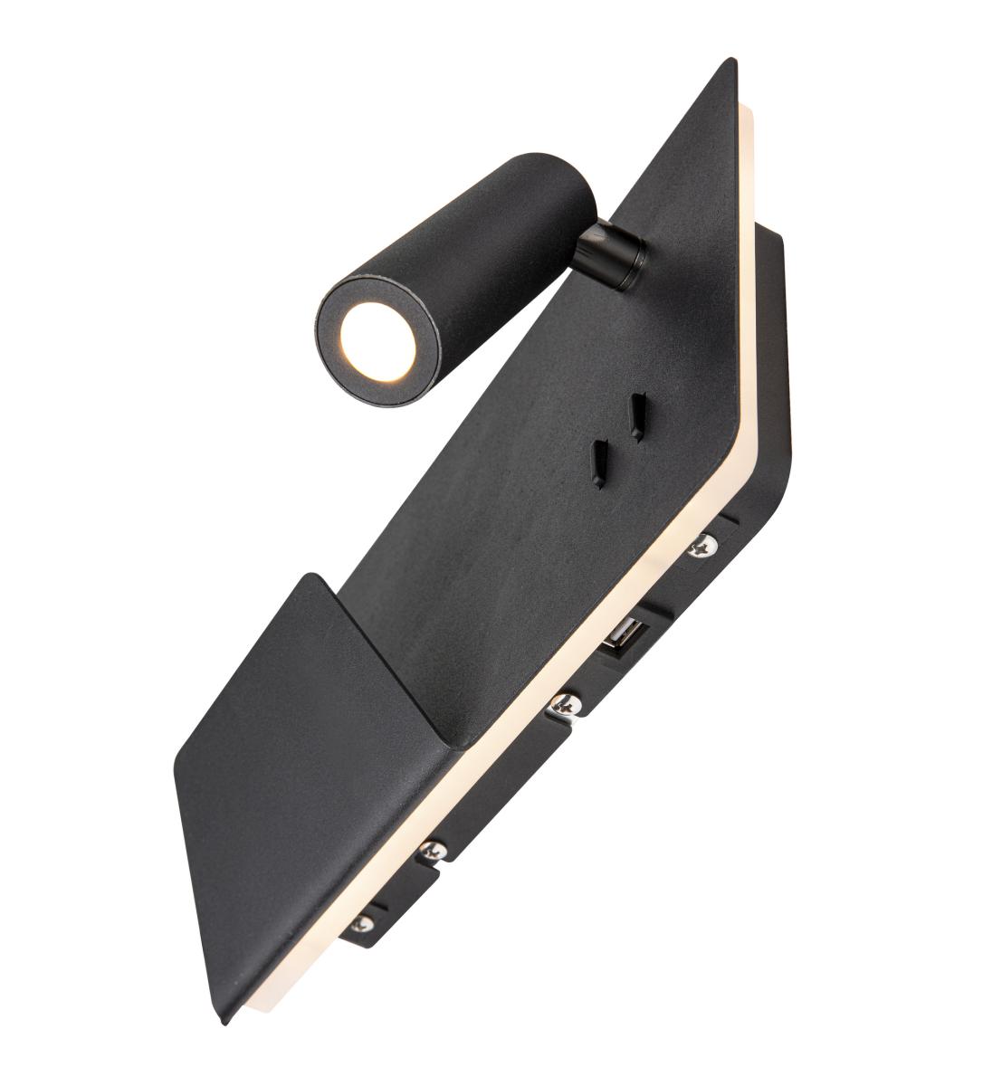 SOMNILA SPOT, Indoor LED Wandaufbauleuchte 3000 K schwarz Version links inkl. USB Anschluss