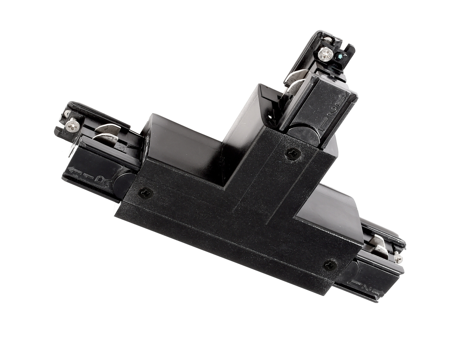 Fast identisch wie beim Eckverbinder lässt sich auch beim T-Verbinder durch Abnehmen der Abdeckung die Richtung [links/rechts] ändern. Konstruktionsbedingt gibt es jedoch zwei T-Verbinder in jeder Farbvariante, da es je nach Aus-richtung sein kann, dass entweder links/links/rechts oder rechts/rechts/links benötigt wird. Aber auch bei diesem Artikel konnten die Varianten um die Hälfte reduziert werden. Das bedeutet auch hier: deutlich vereinfachte Planung und Montage.