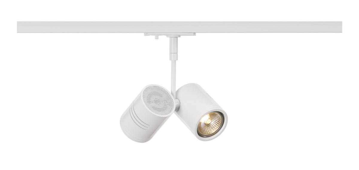 Zweiflammiger, dreh- und schwenkbarer Hochvoltstrahler BIMA 2 mit passendem Adapter für das 1Phasen Hochvolt-Schienen-System. Die aus Aluminium gefertigte Leuchte ist durch die verbauten GU10 Sockel für Halogen- sowie LED-Leuchtmittel geeignet. Die beiden Leuchtenköpfe sind getrennt voneinander frei schwenkbar.