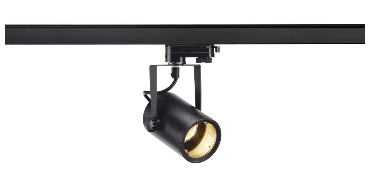 Dreh- und schwenkbarer Hochvoltstrahler EURO SPOT mit passendem Adapter für das 3Phasen Hochvolt-Schienen-System. Durch den im zylindrischen Aluminium Leuchtenkopf verbauten GU10 Sockel ist die Leuchte für Halogen- und LED-Leuchtmittel mit einem Durchmesser von bis 5 cm geeignet.