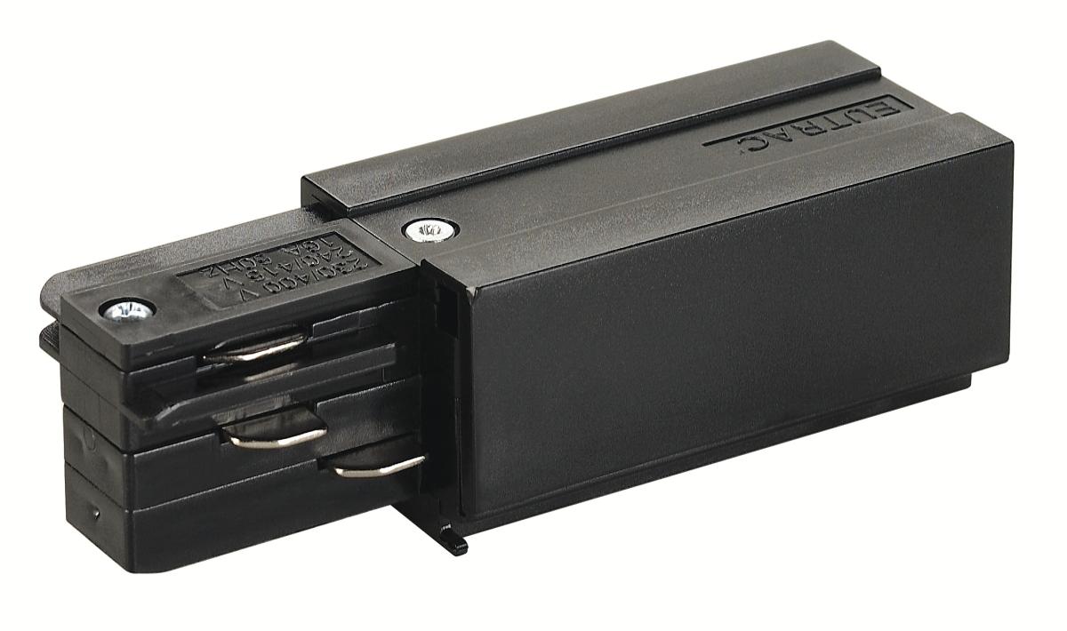 EINSPEISER, für EUTRAC Hochvolt 3Phasen-Aufbauschiene, Erde links, schwarz