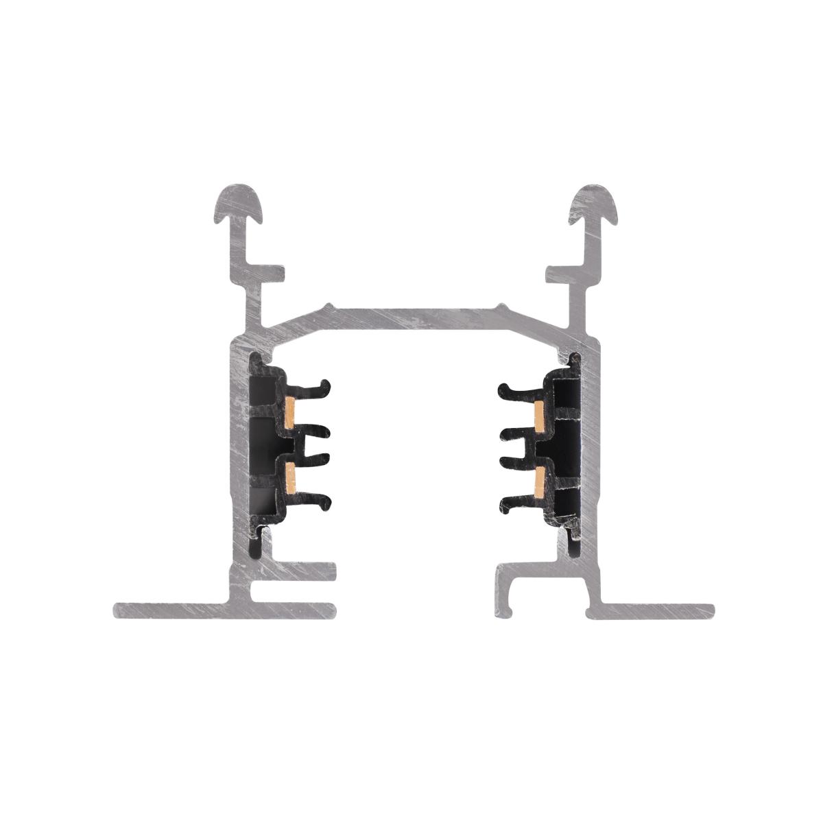 Aluminium Trägerschiene des EUTRAC Hochvolt 3Phasen-Einbauschienen-Systems. Die Einbauversion dieses Systems ist in mehreren Längen verfügbar. Durch die besondere Konstruktion der Schiene besteht die Möglichkeit Deckenelemente im Winkel der Schiene auf zu legen. Angaben zur maximalen Belastung entnehmen Sie bitte der Anleitung. Alternativ steht des Weiteren eine Aufbauversion zur Verfügung. Bitte beachten Sie, dass sich der Weißton ab dem 01. April 2018 von RAL 9010 auf RAL 9016 (Verkehrsweiß) ändert.