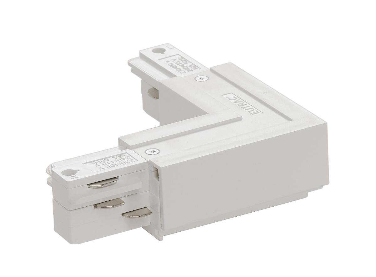 EUTRAC L-Verbinder, mit Einspeisemöglichkeit, Erde aussen, verkehrsweiss