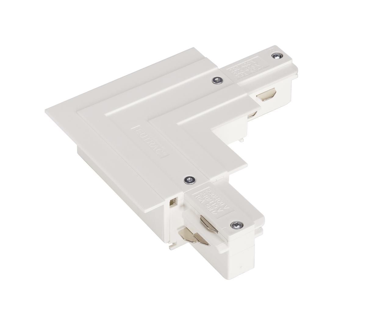 Eckverbinder mit Einspeisemöglichkeit für das Hochvolt 3Phasen-Einbauschienen-System. Der mit Deckenauflage ausgestattete Verbinder ist mit Erdleiter links oder rechts erhältlich. Detaillierte Informationen entnehmen Sie bitte der Planungshilfe. Bitte beachten Sie, dass sich der Weißton ab dem 01. April 2018 von RAL 9010 auf RAL 9016 (Verkehrsweiß) ändert.
