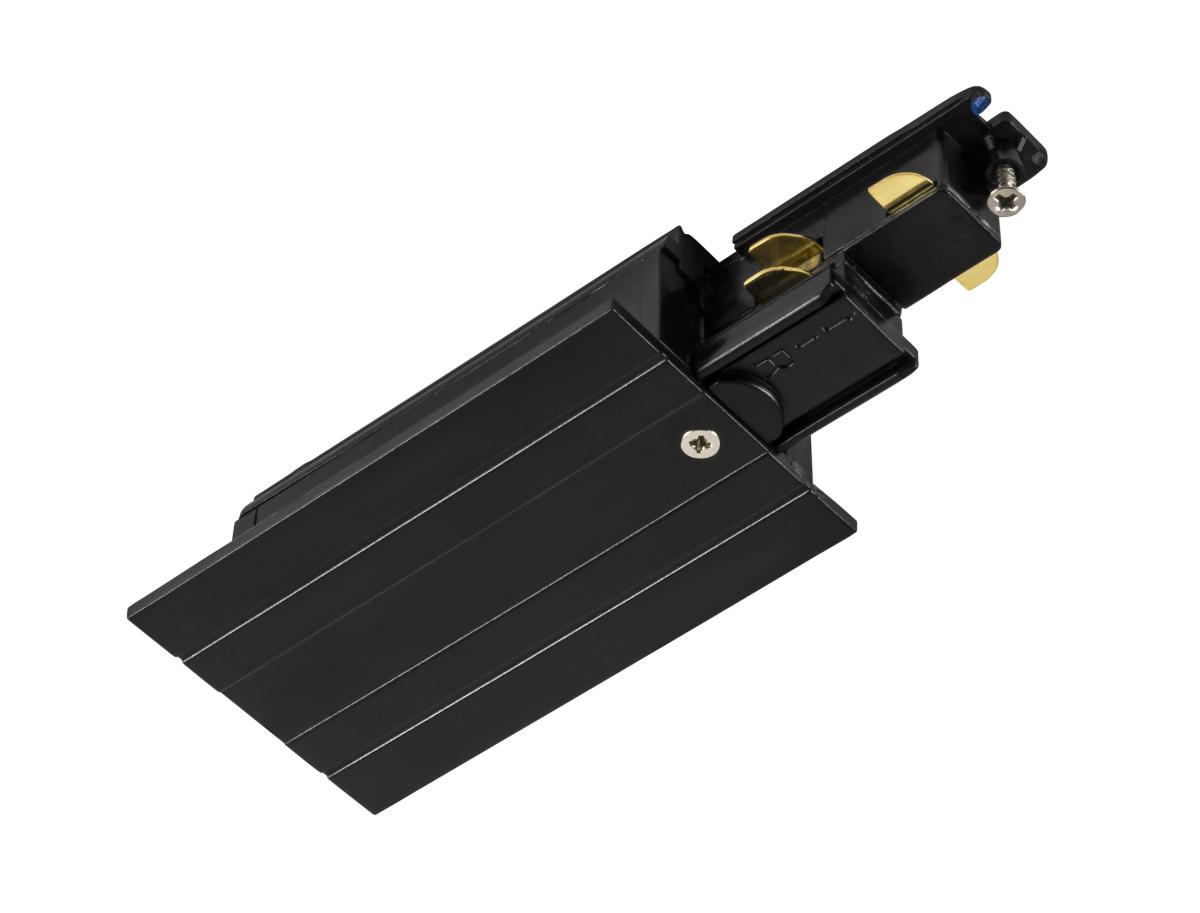 Endeinspeiser für das S-TRACK 3Phasen-Einbauschienen-System. Der schwarze Einspeiser ist mit Erdleiter rechts erhältlich und DALI kompatibel. Detaillierte Informationen entnehmen Sie bitte der Planungshilfe.