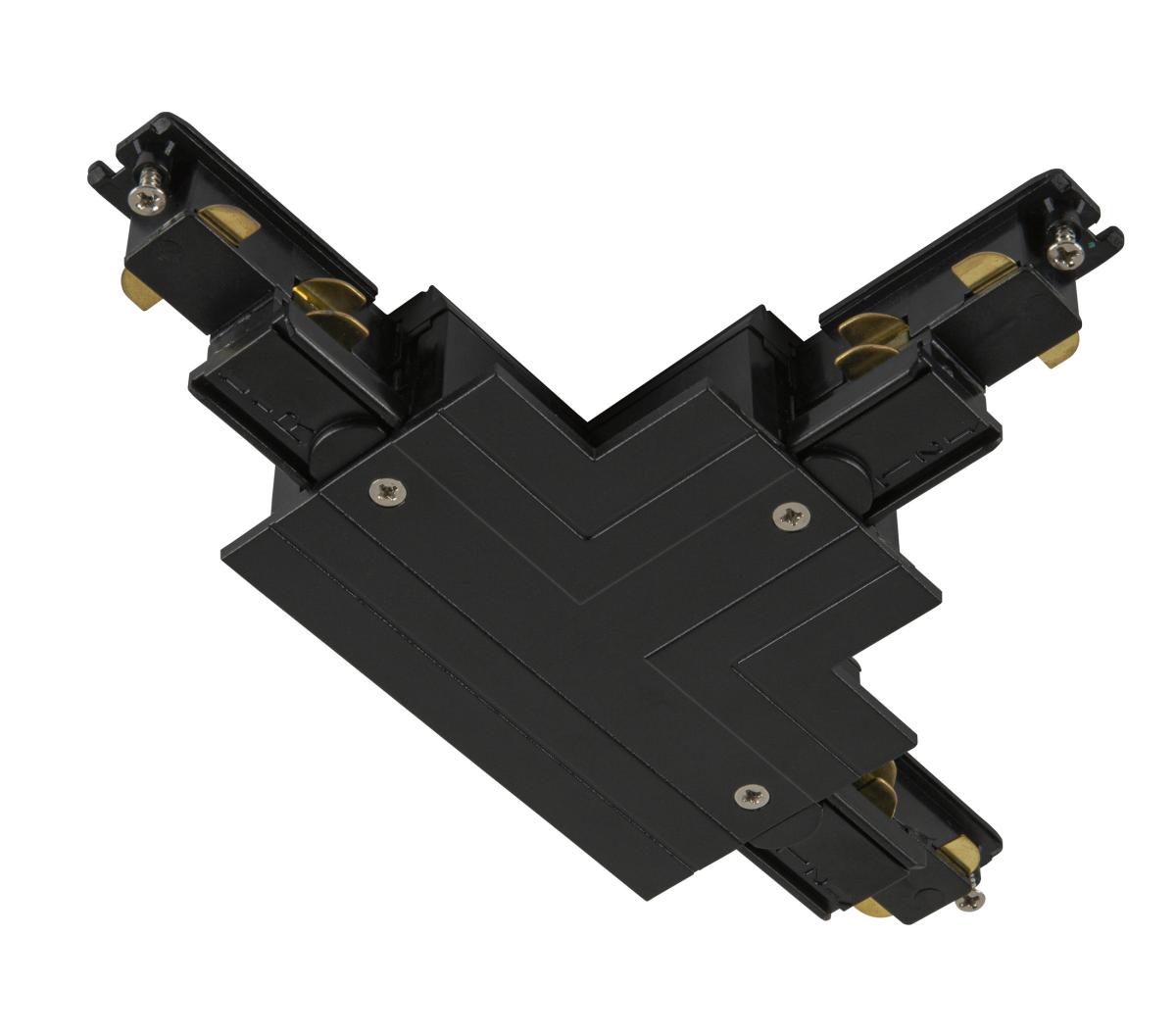 T-Verbinder für das S-TRACK 3Phasen-Einbauschienen-System. Die schwarze Farbversion ist mit Erdleiter außen links erhältlich. Detaillierte Informationen entnehmen Sie bitte der Planungshilfe.