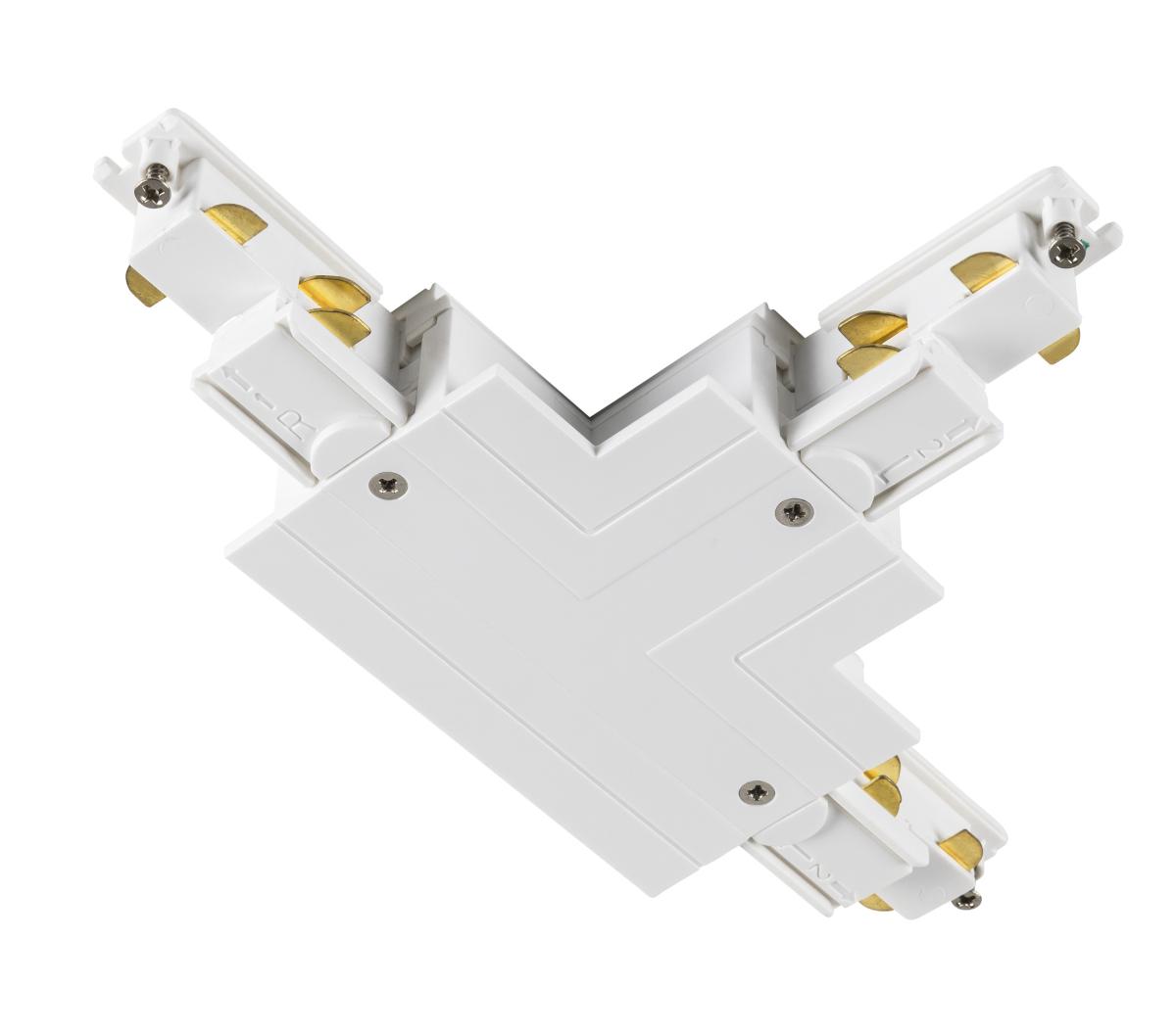 T-Verbinder für das S-TRACK 3Phasen-Einbauschienen-System. Die weiße Farbversion ist mit Erdleiter außen links erhältlich. Detaillierte Informationen entnehmen Sie bitte der Planungshilfe.