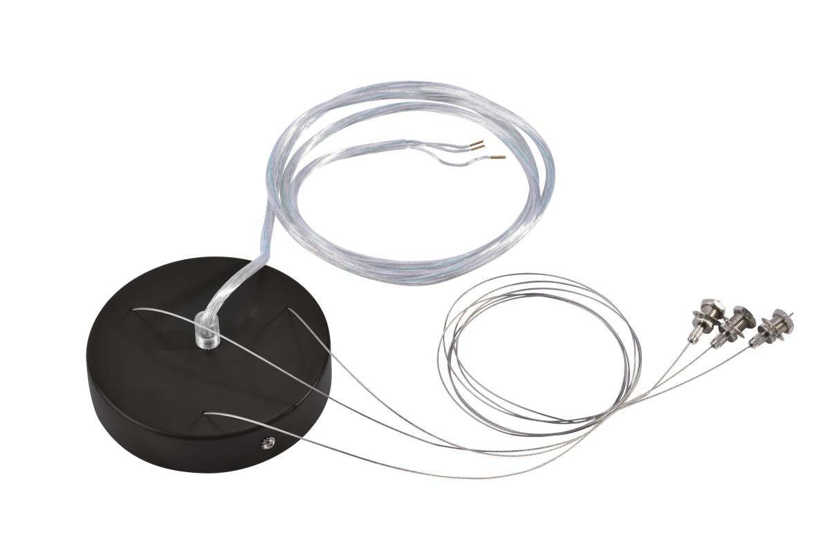 Das Abhängeset, erhältlich in den Ausführungen schwarz, weiß, silbergrau und weinrot, ermöglicht die Umrüstung der MEDO 30 Deckenleuchte zur Pendelleuchte.