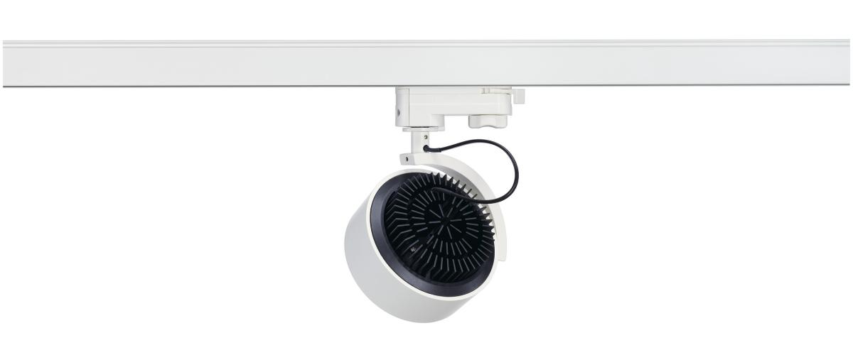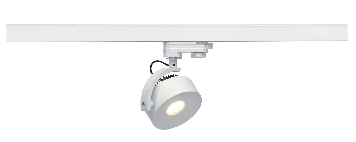 Dreh- und schwenkbar Strahler KALU TRACK mit passendem Adapter für das 3Phasen Hochvolt-Schienen-System. Konzipiert als Erweiterung der beliebten KALU Serie greift dieser Schienenstrahler die Formgebung der Produktfamilie auf. Durch das verbaute LED Modul wird eine hohe Lichtausbeute bei geringem Stromverbrauch gewährleistet. Um allen Beleuchtungsanforderungen gerecht zu werden, sind alternativ Versionen mit G53 Sockel, sowie GX53 Sockel für das 1- und 3Phasen System verfügbar. Diese Leuchte enthält eingebaute LED-Lampen.