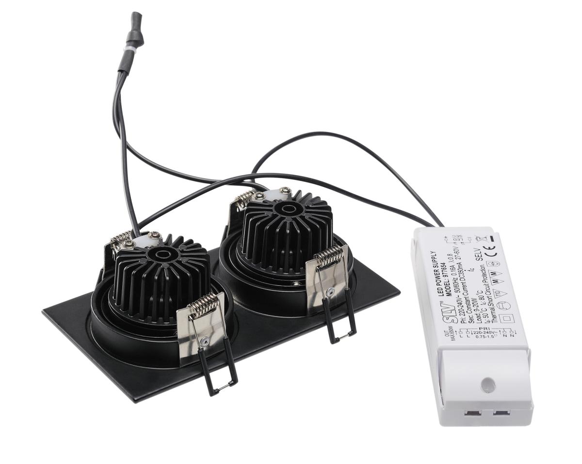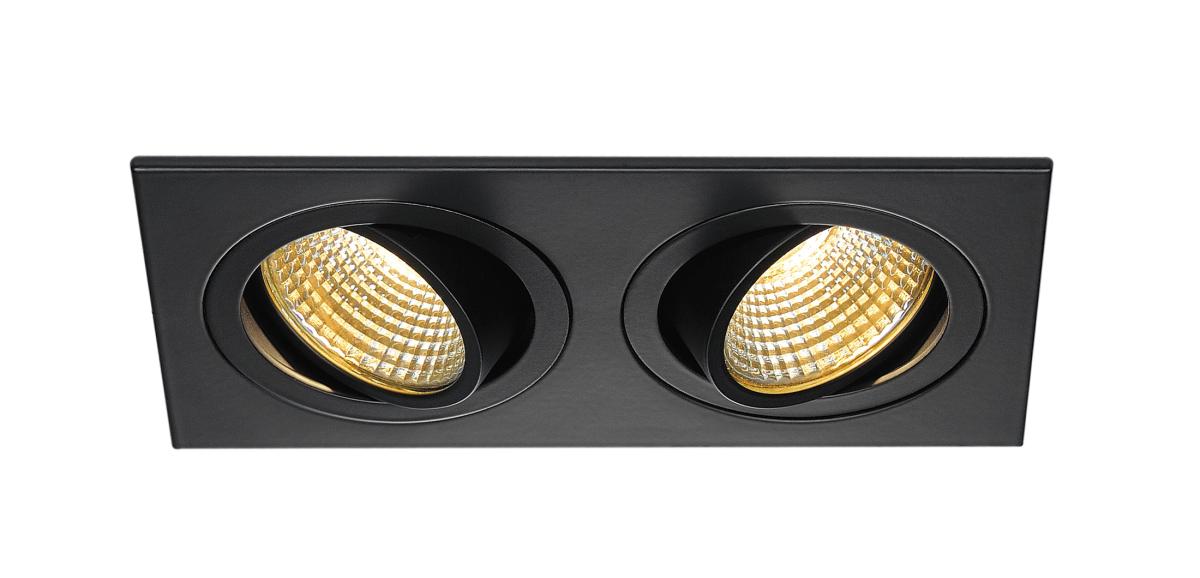 NEW TRIA 155, Einbauleuchte, zweiflammig, LED, 2700 K, rechteckig, schwarz matt, 38°, 15 W, inkl. Treiber, Clipfedern