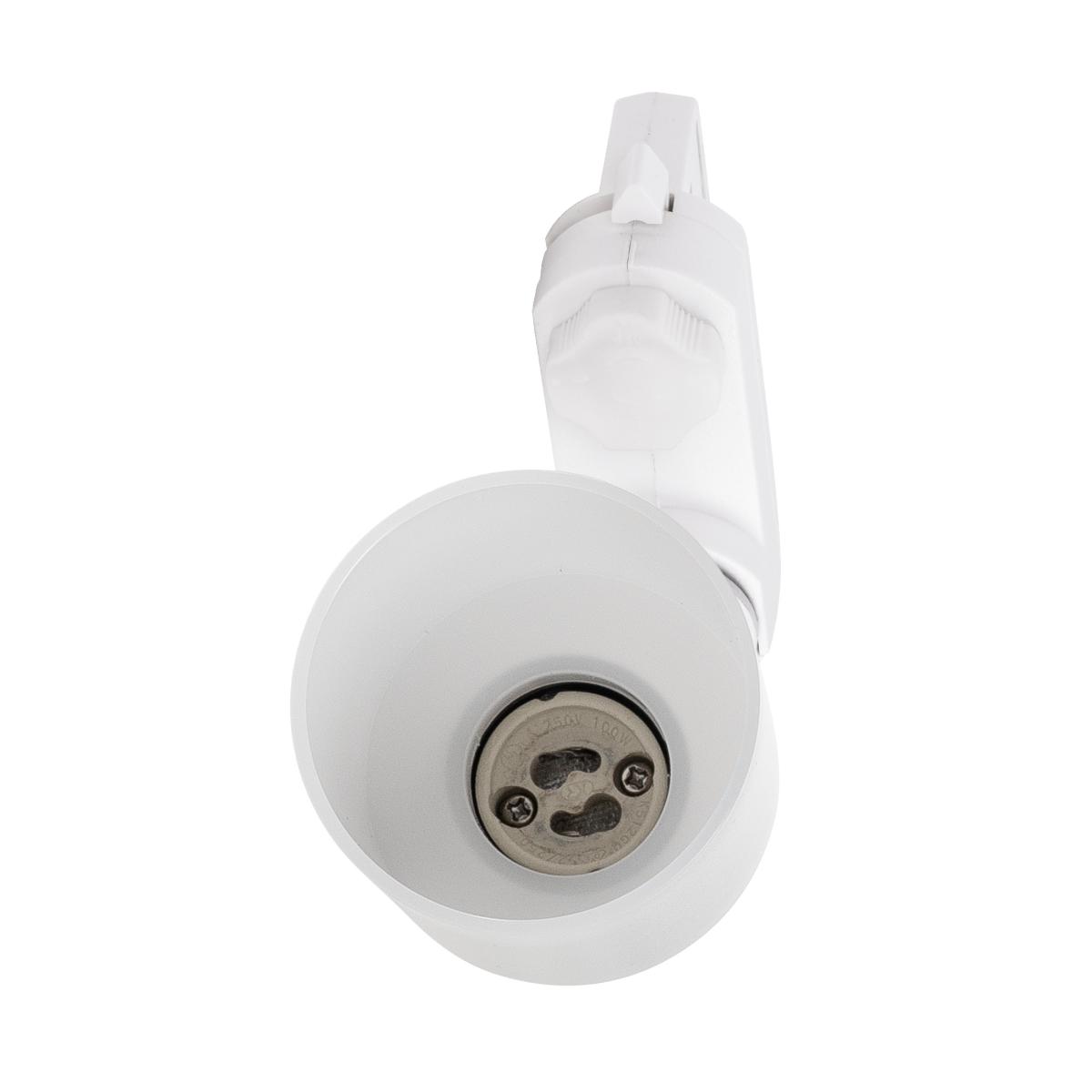 Dreh- und schwenkbarer Hochvoltstrahler PURI TRACK mit passendem Adapter für das 3Phasen Hochvolt-Schienen-System. Die aus Aluminium gefertigte Leuchte ist durch den verbauten GU10 Sockel für Halogen- sowie LED-Leuchtmittel geeignet.