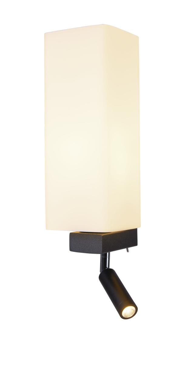 Die Wandleuchte QUADRASS SPOT besticht durch einen gelungenen Mix der Metall- und Glaselemente und ist, neben der Hauptlichtquelle, mit einer LED-Leseleuchte in warmweißer Lichtfarbe ausgestattet. Durch den gewählten Abstrahlwinkel der LED-Leseleuchte wirkt diese nahezu blendfrei und sorgt so für ein angenehmes, auf den Nutzer entspannt wirkendes Licht. Die E27 Fassung hinter dem Glasschirm, sowie der bereits eingebaute LED Treiber, machen QUADRASS SPOT fertig für den direkten Anschluss an 230V Netzspannung. Um das Bild der Anwendung möglichst einheitlich zu gestalten, sind Wandleuchten ohne Leselicht und eine Pendelleuchte verfügbar.