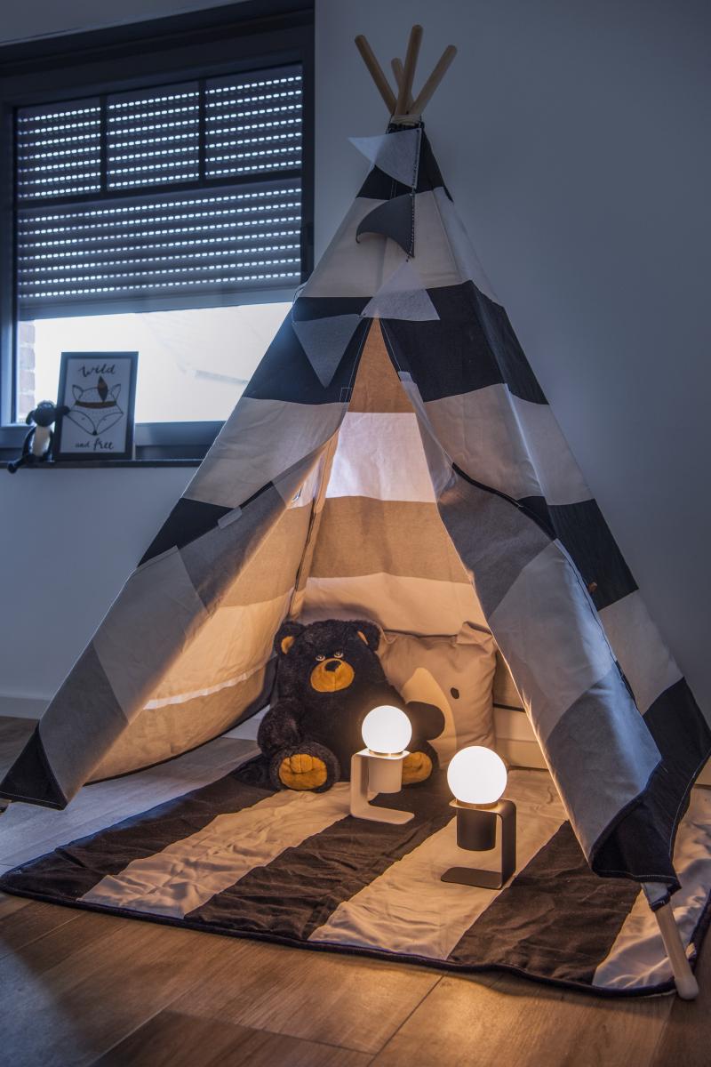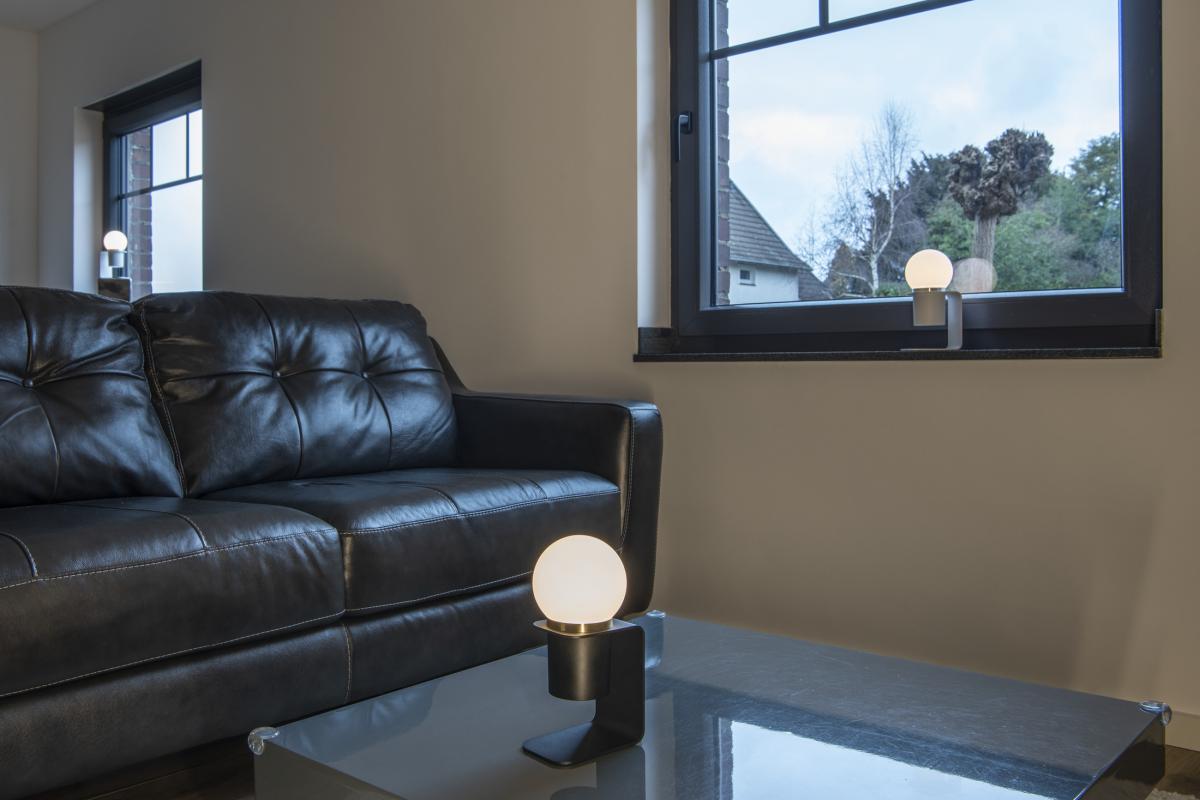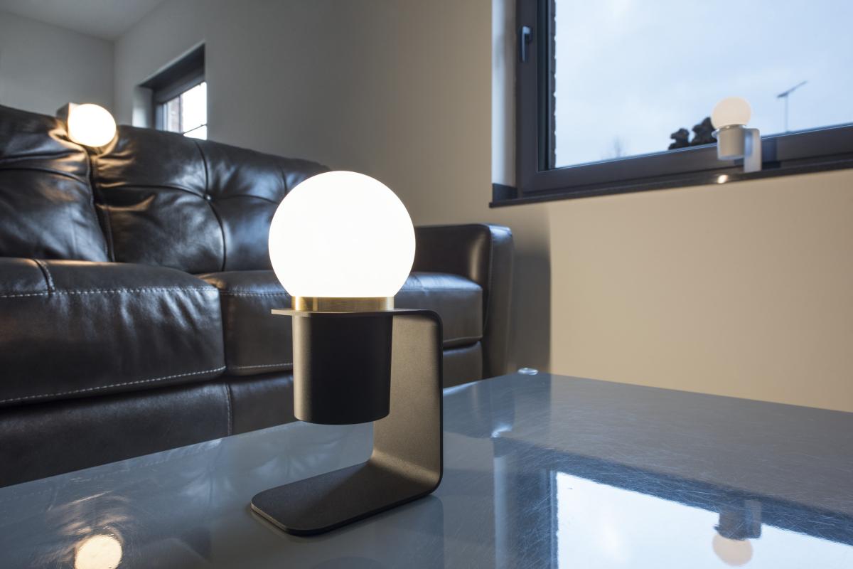 Transportables Lichtobjekt der TONILA Serie. Die warmweißen LED der in zwei Farben verfügbare Leuchte können mittels Schalter gedimmt werden.