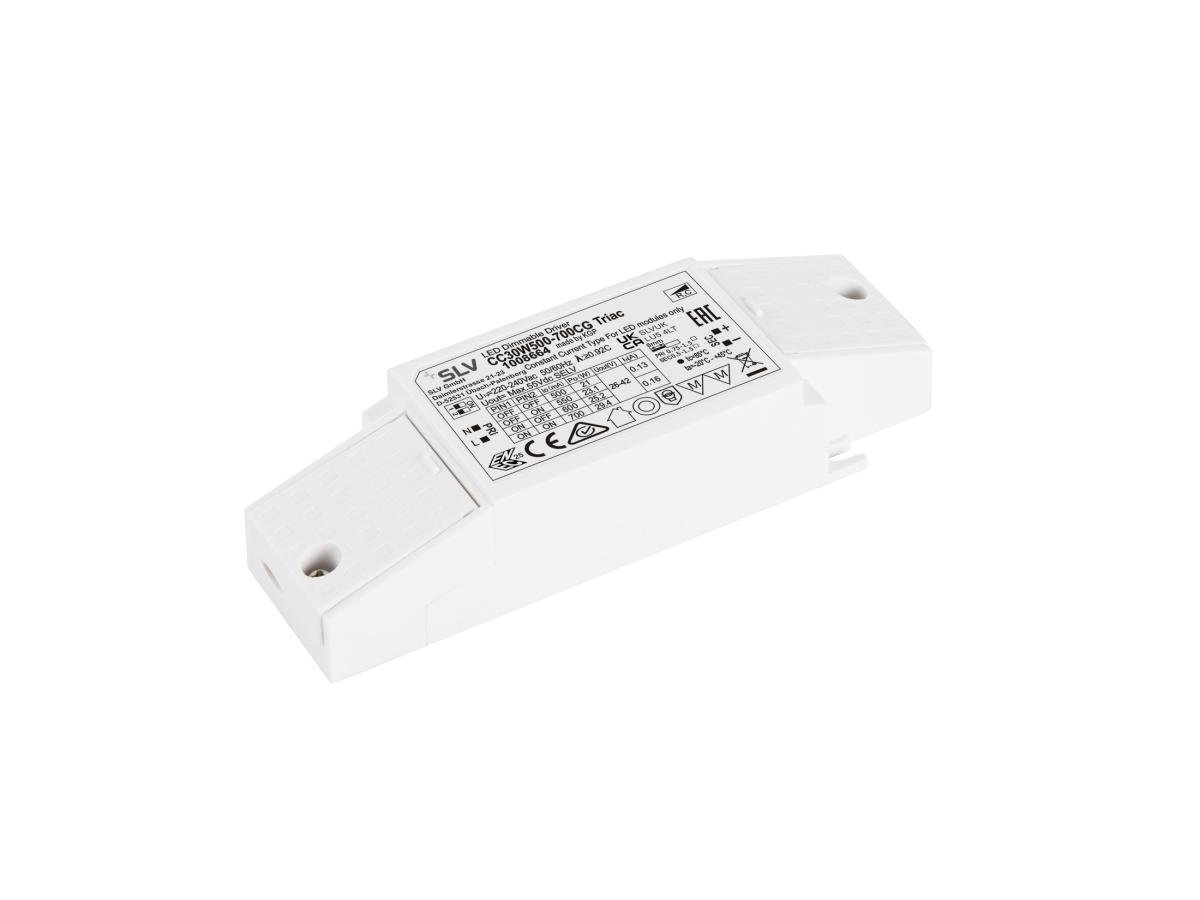 Phasendimmbarer Konstant-Stromtreiber, 30 W, mit einstellbarer Stromstärke per DIP: 500 mA/550 mA/600 mA/700 mA, mit Zugentlastung