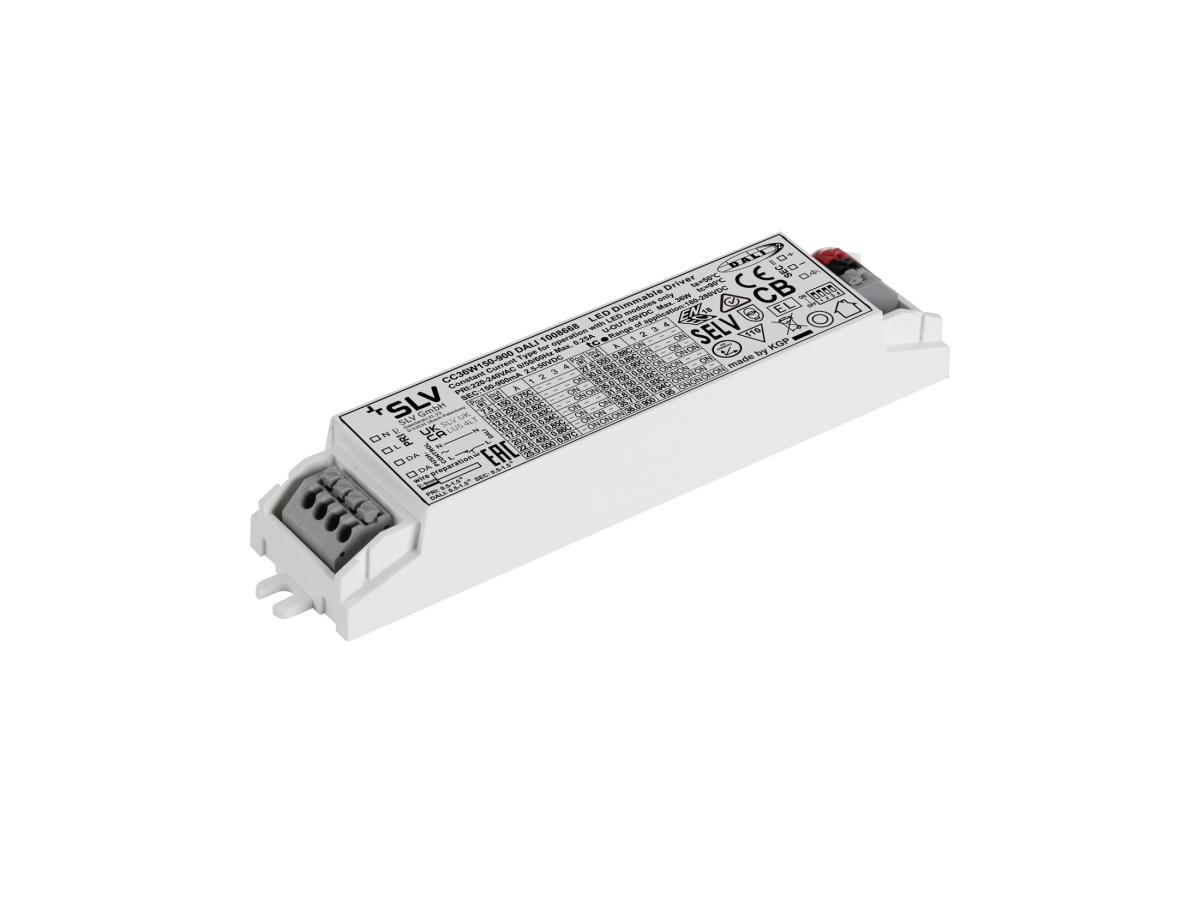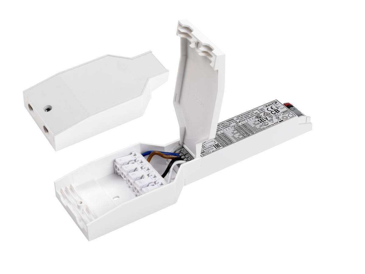 Dieser DALI und Push-Dim fähige Konstant-Stromtreiber mit 36 W Leistung bietet eine einstellbare Stromstärke per DIP: 150 mA, 200 mA, 250 mA, 300 mA, 350 mA, 400 mA, 450 mA, 500 mA, 550 mA, 600 mA, 650 mA, 700 mA, 800 mA, 850 mA, 900 mA. Eine Zugentlastung ist optional erhältlich
