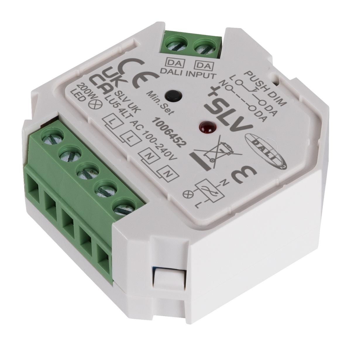 Der Dimmer-Konverter ist ein Phasenschnittdimmer mit DALI- und Push-Steuerschnittstelle. Material : Polycarbonate (PC) Farbe : weiß Eingangsspannung : 100-240V ~50/60Hz Schutzart : IP20 Datenblatt